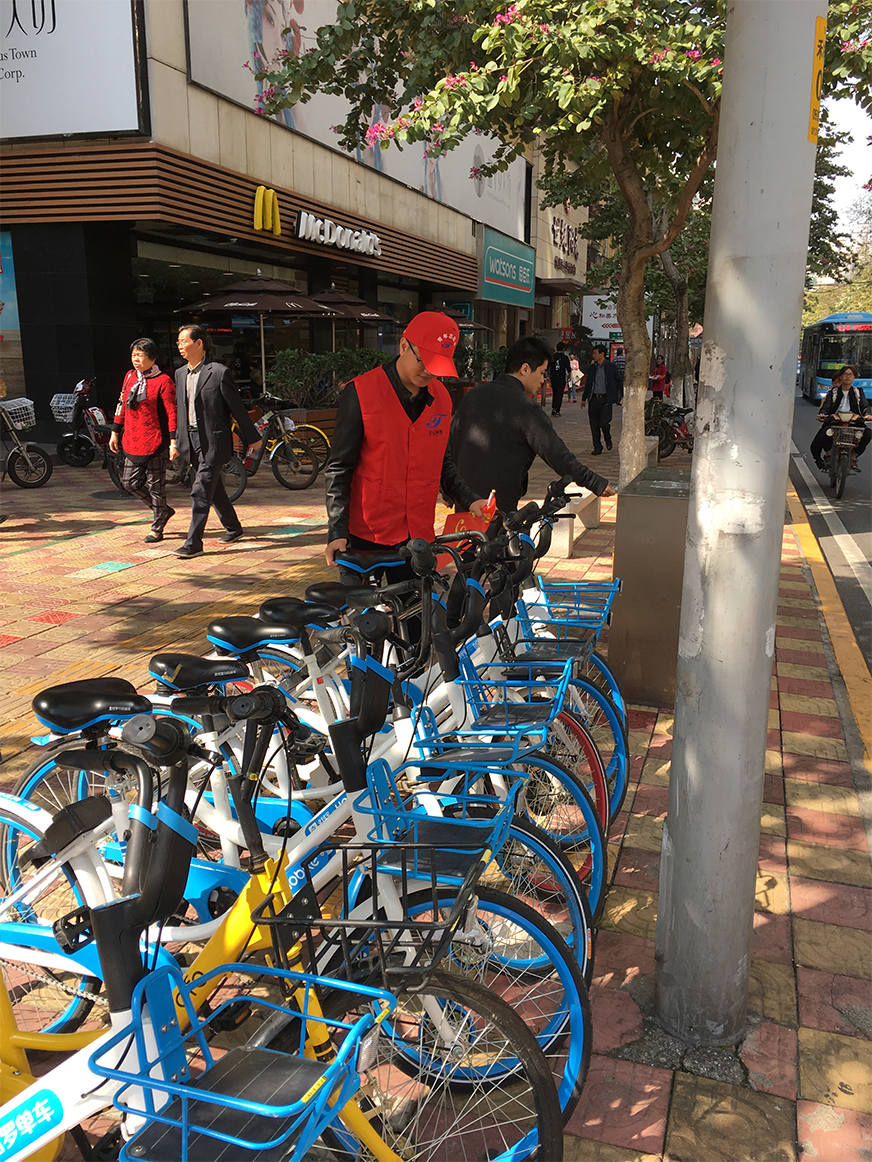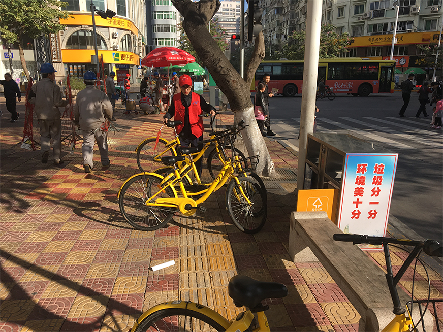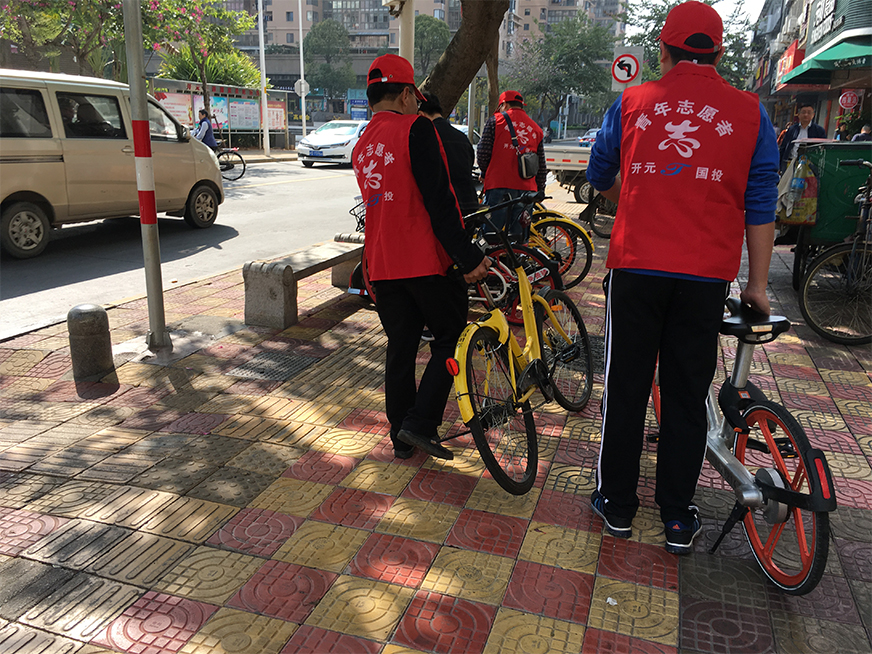 志愿者親自示范擺放小黃車