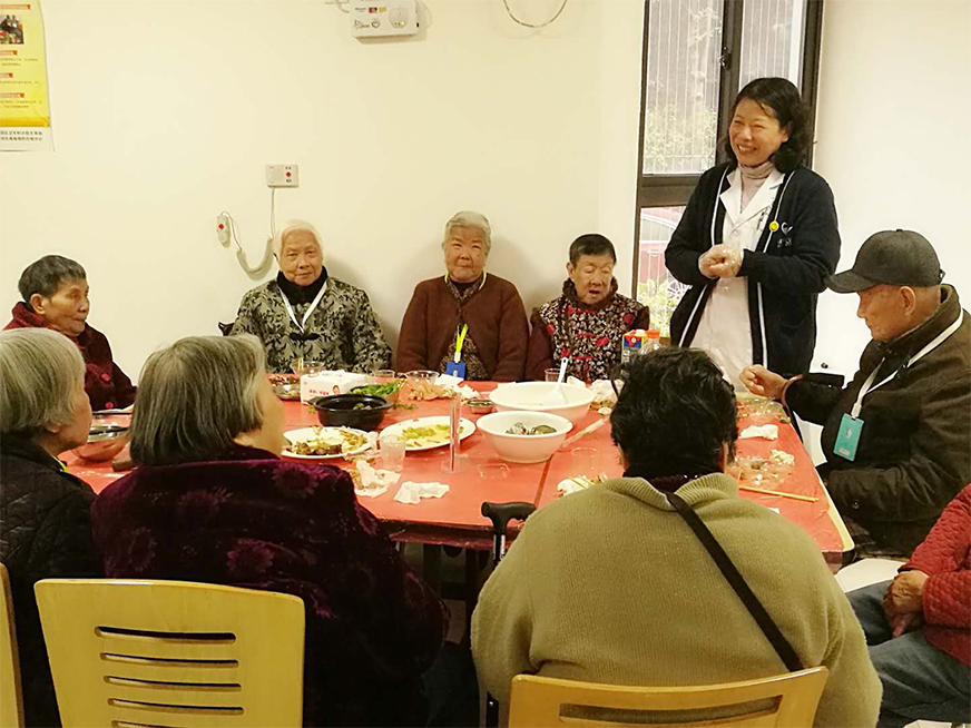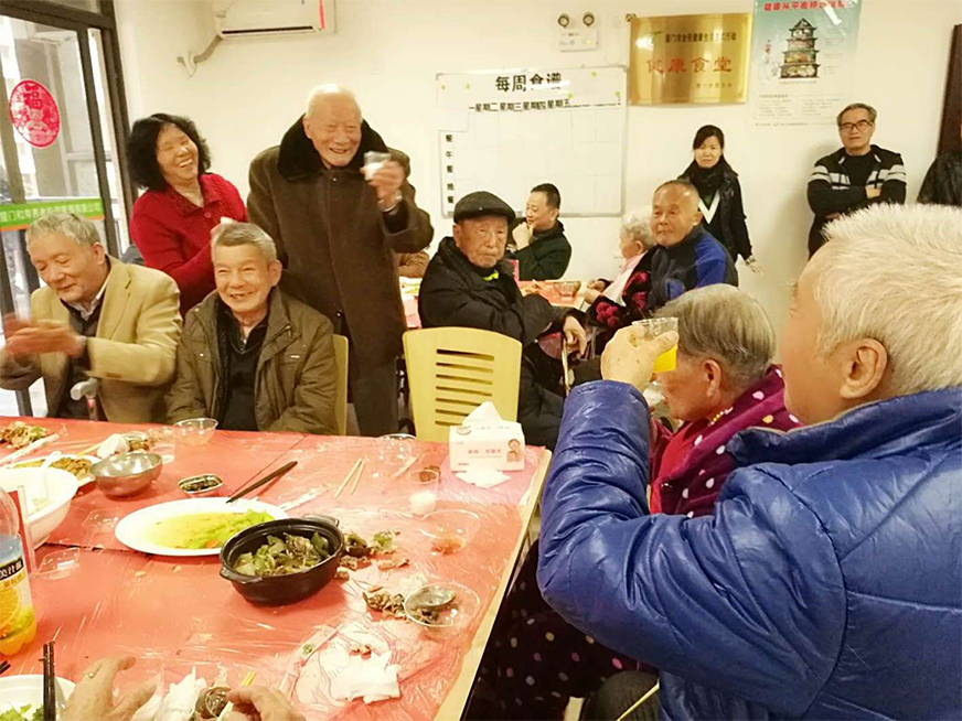 開飯時間到了,老人們都換上漂亮的新衣服,他們的臉上都洋溢著孩子般的笑容,行動方便的老人在護工的攙扶下來到了餐廳,大部分行動不便的老人安排在各個樓層用餐,由護士幫忙夾菜喂飯。公司所有員工全部到場為老人服務,不論是在餐廳還是在樓層,到處都能看到員工忙碌的身影。為了讓老人更開心,公司還邀請部分家屬一起來陪伴老人吃年夜飯,讓親情在陪伴中得到交流,還有幾個可愛的小志愿者也前來服務,更有趣的是,還有家屬把家里的寵物狗也帶過來了,為狗年增添幾分樂趣,為老人們添旺加福!整個場面喜慶洋洋,老人們特別得高興,臉上無一不掛滿了笑容。